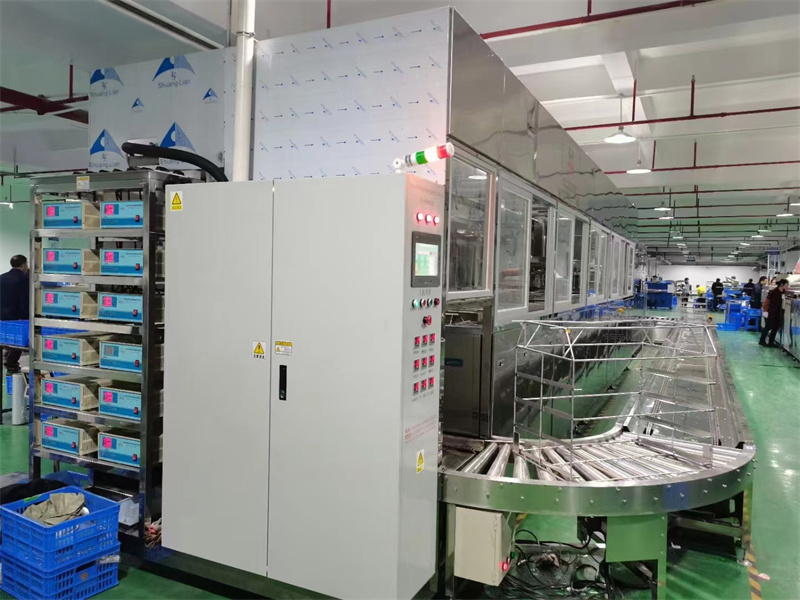 超聲波清洗設備多為箱槽結構,清洗槽大小決定單次清洗能力,可以根據被清洗零部件大小和數量選擇清洗槽清洗形式可以是單槽清洗,也可以是多槽清洗,單槽清洗即為零部件在一個清洗槽內清洗完畢多槽清洗,是指將清洗過程分為多個工步,零部件從第一個槽清洗后,進人第二個槽繼續(xù)清洗,之后再進人第三個槽,第四個槽·····一般每個槽主要去除一種污染物清洗液需要根據零部件材料選擇,金屬材料常用的清洗液有汽油、酒精、水劑等,非金屬材料清洗液多為對零部件無損害的溶液單槽清洗時常選用汽油、酒精等揮發(fā)性溶液,溶液揮發(fā)性強化清洗效果;多槽清洗時,多選用水劑,主要考慮降低成本和提高安全性等因素不論是單槽清洗還是多槽清洗,隨著清洗過程的進行,溶液溫度會逐漸上升,同時也會導致被清洗零部件溫度上升,一般多槽清洗后溫度在45一55℃,單槽清洗后溫度在25~40℃兩種清洗方式都會伴隨出現“發(fā)泡”現象,發(fā)泡會增強去污力清洗前需要對零部件進行防護處理,保護被清洗零部件,清洗后對零件進行防銹處理,最后進行包裝。