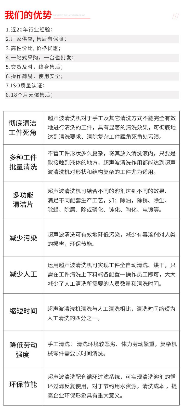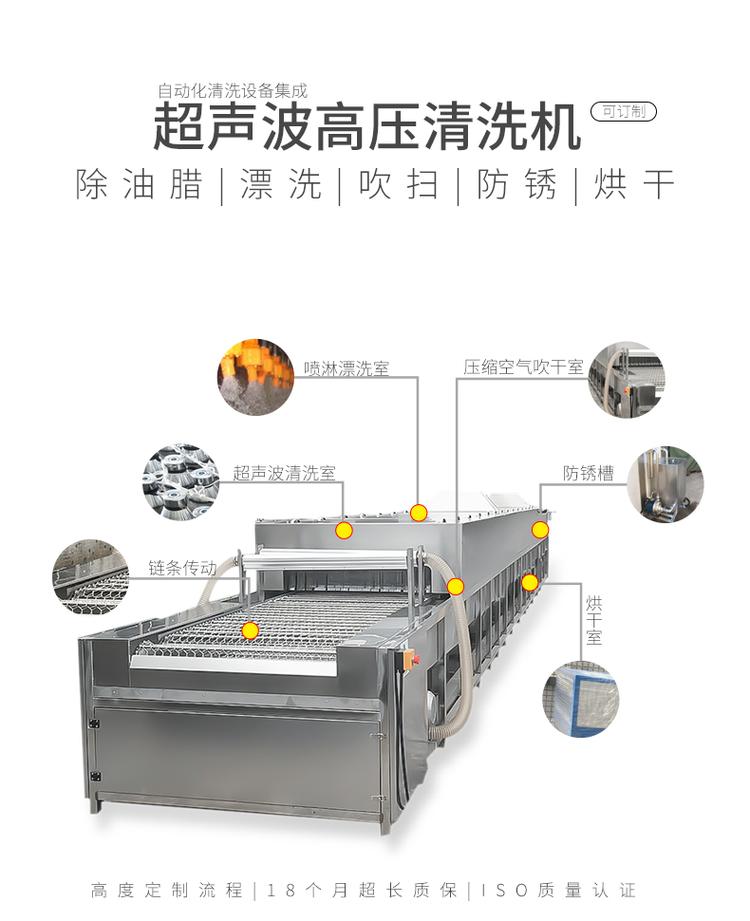 鋁合金壓鑄件噴淋清洗機(jī)是一臺(tái)履帶式超聲波清洗烘干線,采用特制網(wǎng)鏈傳動(dòng)輸送工件,具有超聲波粗洗、超聲波精洗、鼓泡過水、切水、烘干、等功能的新穎連續(xù)式清洗烘干設(shè)備。由人工將工件放在特制的傳動(dòng)網(wǎng)鏈上,工作時(shí),清洗工件置于輸送帶上,依次通過清洗室、清洗室、漂洗室、切水室、烘干室完成清洗、漂洗、過水、吹水、烘干等流程后出料,超聲波槽回液經(jīng)過濾處理循環(huán)使用,該機(jī)具有工位多,功能全,結(jié)構(gòu)合理,操作方便,清洗效果好的優(yōu)點(diǎn),這對于流水線零件的清洗,改善勞動(dòng)環(huán)境,節(jié)省勞動(dòng)力,提高清洗和吹干質(zhì)量,具有重要的意義,適用范圍:如LED燈杯、燈座、燈罩、燈殼、鋁殼、沖壓鋁件,電機(jī)外殼、散熱器、五金配件等等。