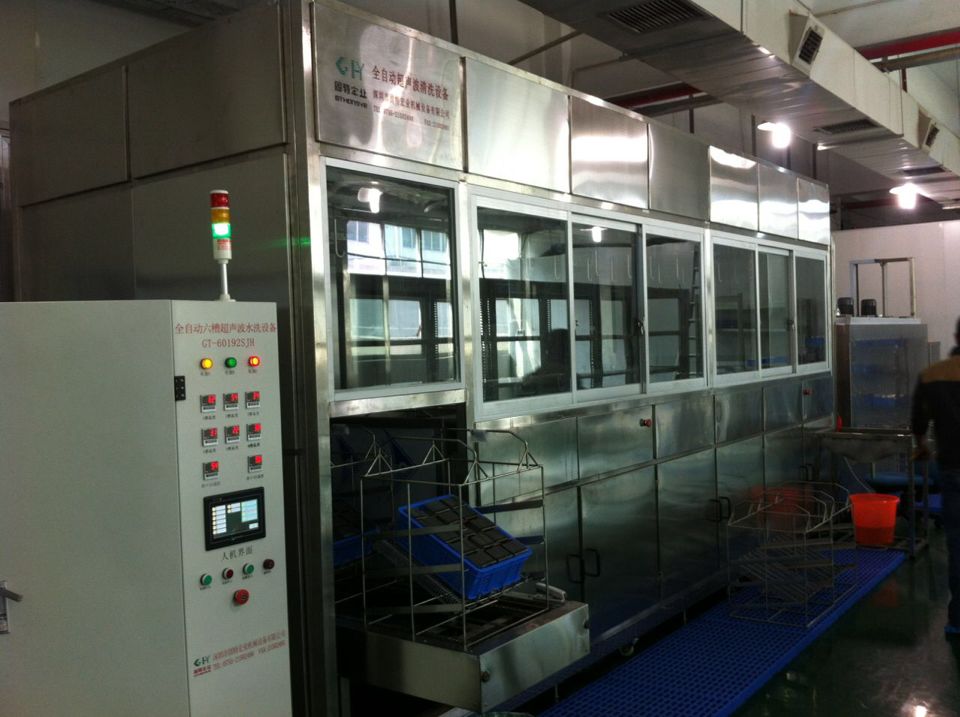 上料→超聲粗洗→超聲粗洗→超聲精洗→超聲精洗→超聲漂洗→熱風干燥→下料