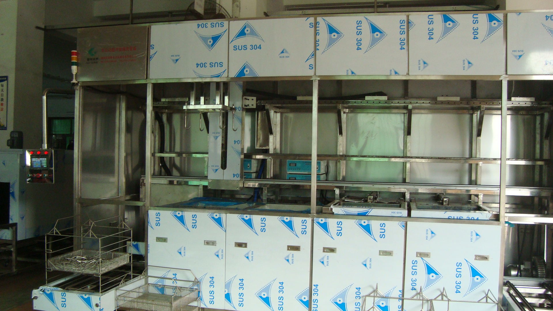 上料→超聲粗洗→超聲粗洗→超聲精洗→超聲精洗→超聲漂洗→→下料